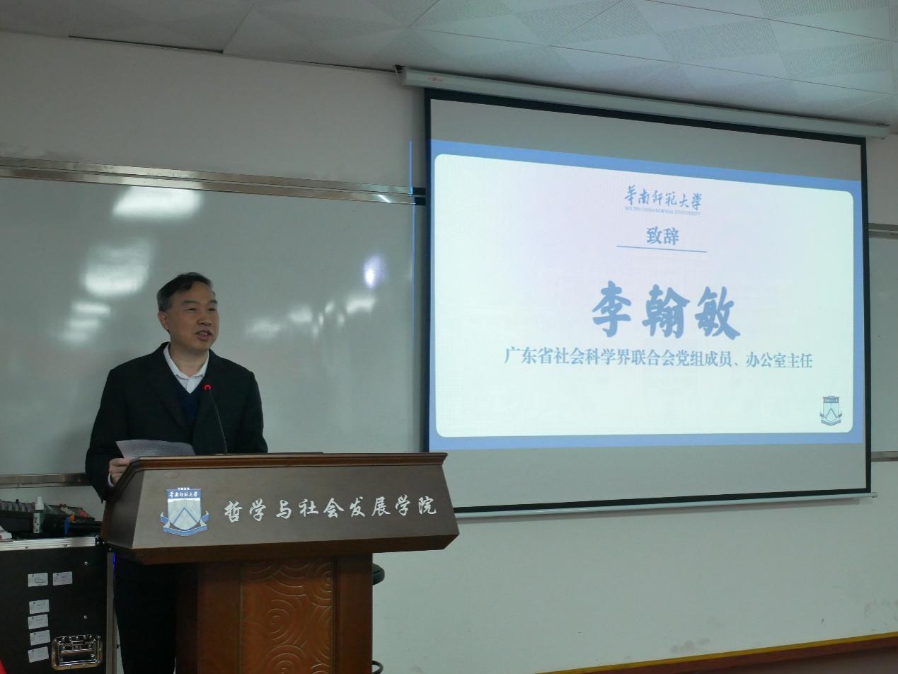 李翰敏代表省社科联对华南师范大学逻辑与分析哲学研究中心加入省社科研究基地矩阵表示热烈祝贺,向支持广东社科事业发展的华南师大及各界同仁致以敬意。他指出,当前省社科联正全力推进“系统性变革、集成式重塑”,通过整合社科规划、评奖、基地建设等核心业务板块,为全省社科工作者搭建更优质的学术交流与成果转化平台。此次中心揭牌,既是华南师大深耕文科领域的重要成果,也是广东夯实哲学社会科学基础研究、布局前沿学科的关键举措。他期望中心未来能坚守基础研究核心,探索逻辑学与人工智能、认知科学的交叉融合,产出原创性学术成果;能面向粤港澳大湾区汇聚顶尖学者,打造开放共享的学术共同体;能立足广东发展需求,将学术研究与区域建设结合,提供务实智慧方案。省社科联也将与华南师大深化合作,在重大课题策划、高水平集刊创办、青年学者培养等方面提供支持,助力中心建成具有全国影响力的学术重镇。