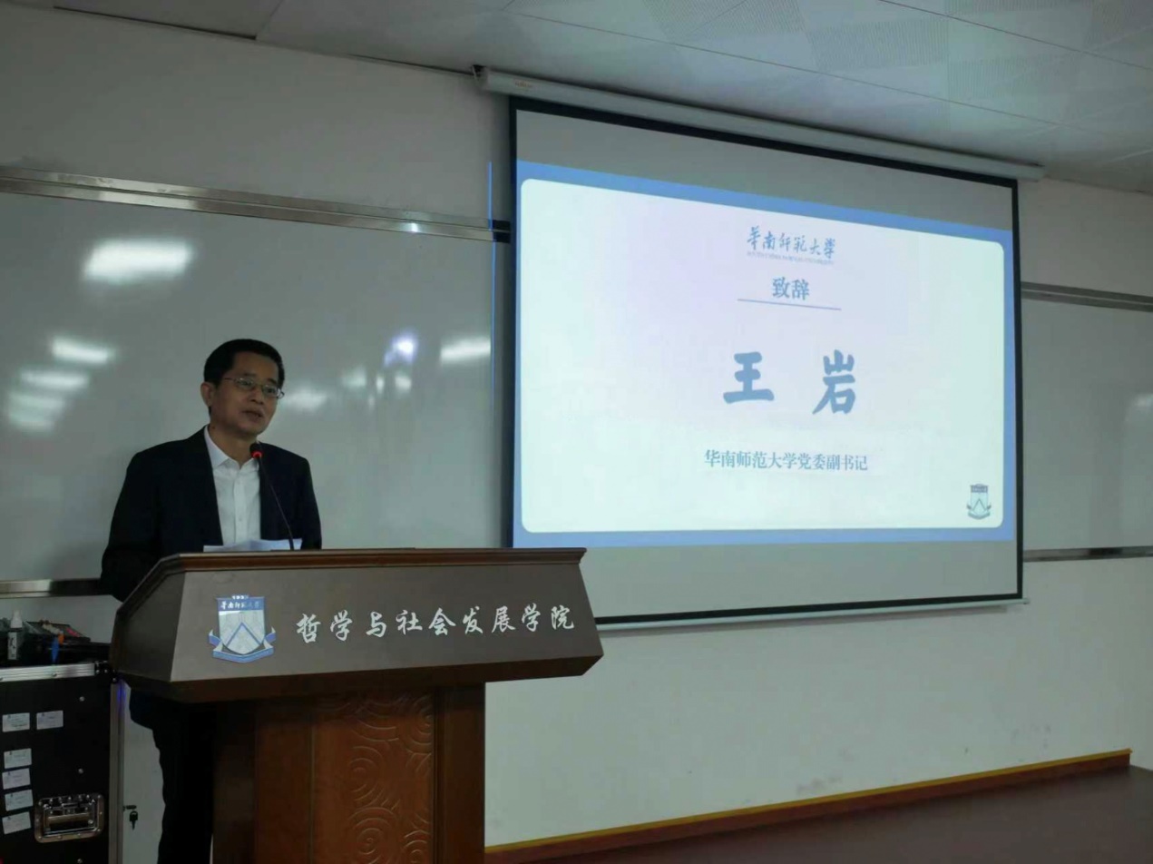揭牌仪式上,王岩对各位嘉宾莅临出席逻辑与哲学论坛暨揭牌仪式表示热烈欢迎,向长期以来关心支持学校人文社科事业发展的省社科联及各界同仁表示衷心感谢。他介绍,华南师大建校92年来,在教育学、心理学、哲学等人文社科领域持续深耕积淀,其中哲学学科已构建起“学士-硕士-博士-博士后”完整人才培养体系,是广东省优势重点学科;逻辑与分析哲学研究中心在2014年成为校级研究平台,如今汇聚了教育部“长江学者”特聘教授、国际哲学院院士、广东省“特支计划”领军人才等一批校内外高层次人才。学校将以中心获批省社科研究基地为新起点,继续加大资源投入与保障力度,推动逻辑与分析哲学学科深化基础研究、拓展交叉领域,为构建中国特色哲学社会科学体系、服务广东哲学社会科学事业高质量发展贡献华师力量。