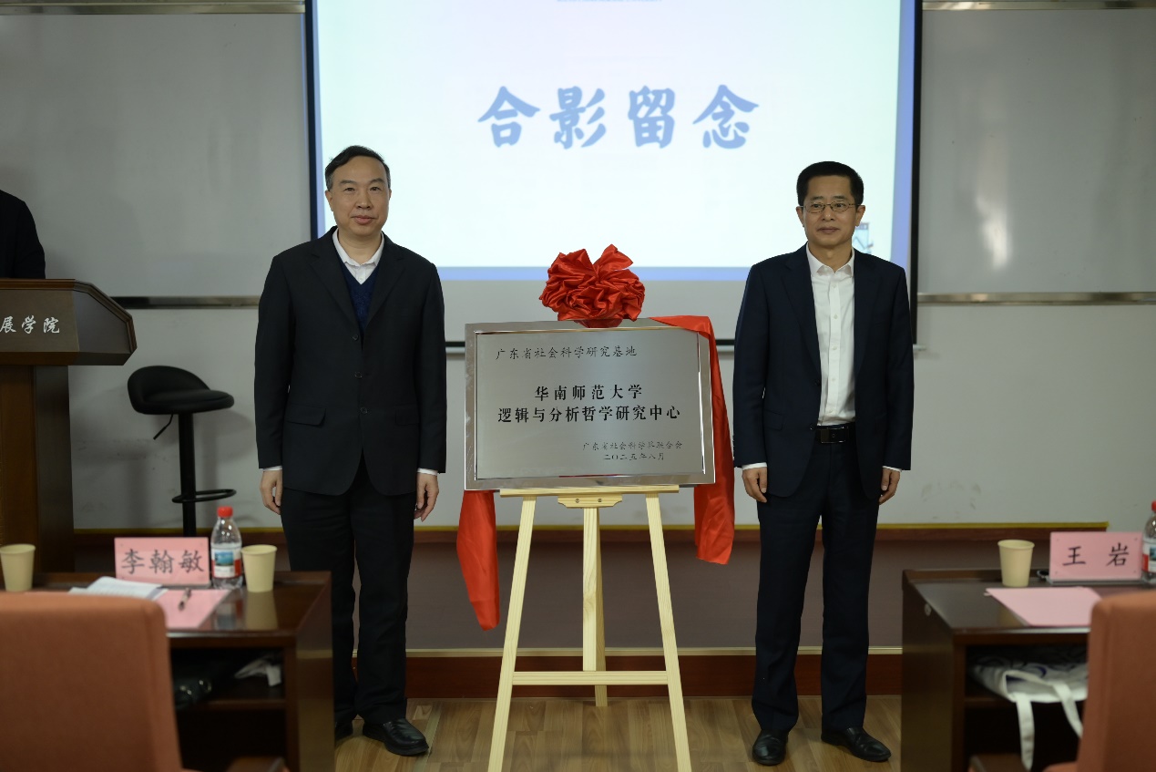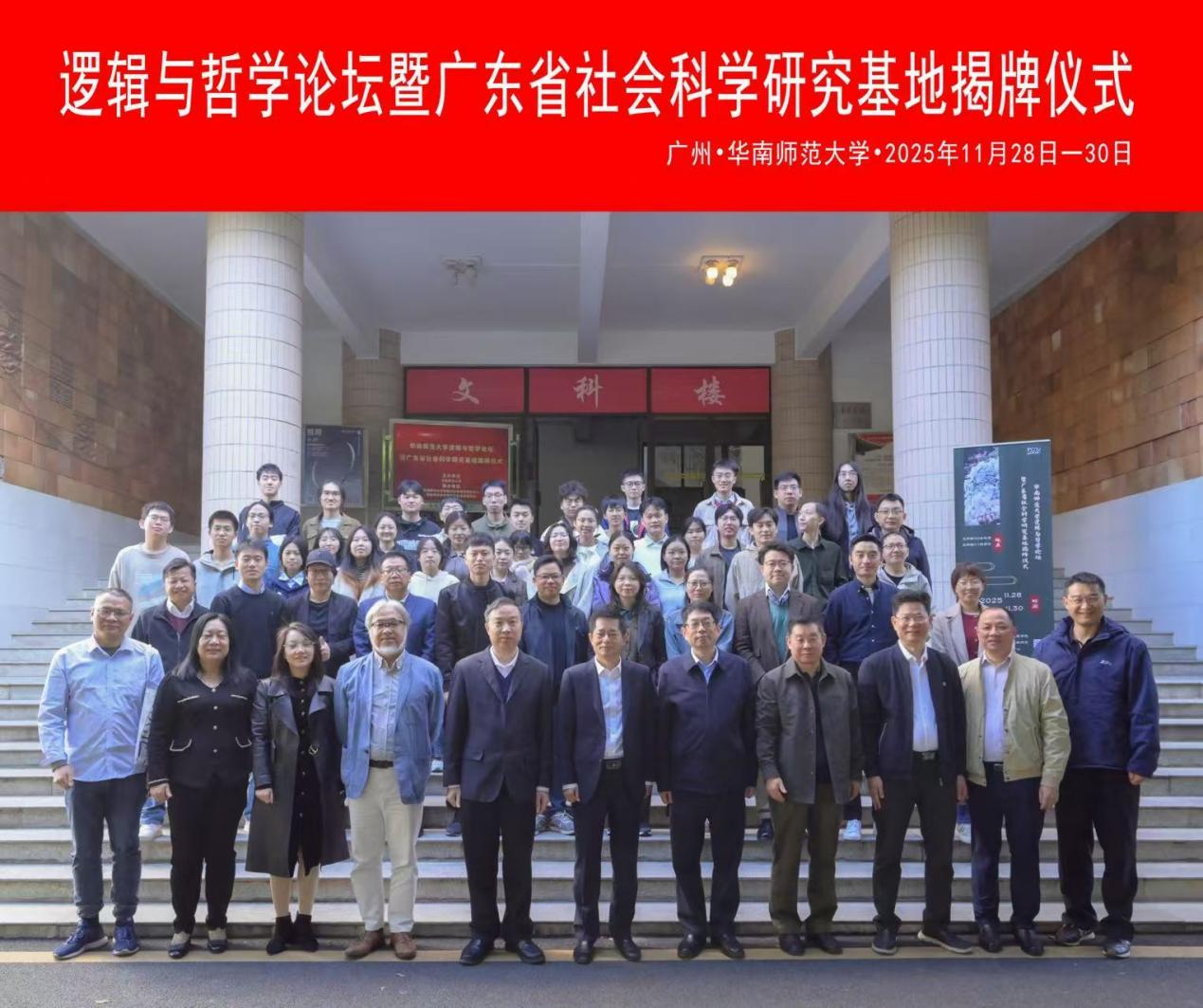 2025年11月29日上午,逻辑与哲学论坛暨省社科研究基地揭牌仪式在华南师范大学石牌校区文科楼 211 讲学厅举行。华南师范大学党委副书记王岩,广东省社科联党组成员、办公室主任李翰敏出席并致辞;华南师范大学社科处副处长林依,华南师范大学哲学与社会发展学院院长闫坤如、党委副书记杨茂雄、副院长陈晓斌,逻辑与分析哲学研究中心执行主任熊明,中心首席专家兼学术委员会主任胡泽洪一同出席仪式;来自南开大学、华南农业大学、深圳大学、广东省社会科学院等高校和科研院所的专家学者受邀参加,仪式由哲学与社会发展学院党委书记姚文忠主持。